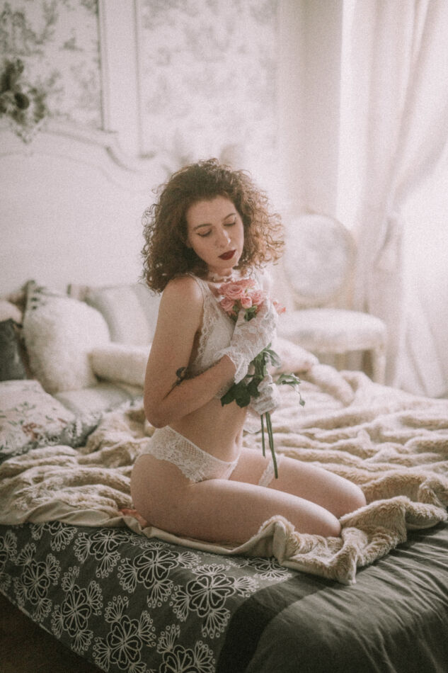 Ma première séance intime avec Lucas a été difficile pour moi, étant donné que je suis une personne pudique et très complexée. Cependant, grâce à lui, cette séance a représenté un énorme pas en avant pour moi. Lucas est une personne incroyable, mais surtout un photographe très professionnel. Ce jour-là, notre thème était déjà bien défini, mais Lucas a proposé quelques idées qui étaient plus osées que ce à quoi je suis habituée. Il me les a simplement soumises, et si ça me tentait, c’était à moi de lui faire savoir. Aimant repousser mes limites et ayant déjà une certaine confiance en Lucas, j’ai finalement accepté.